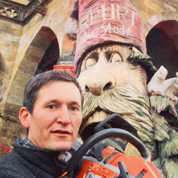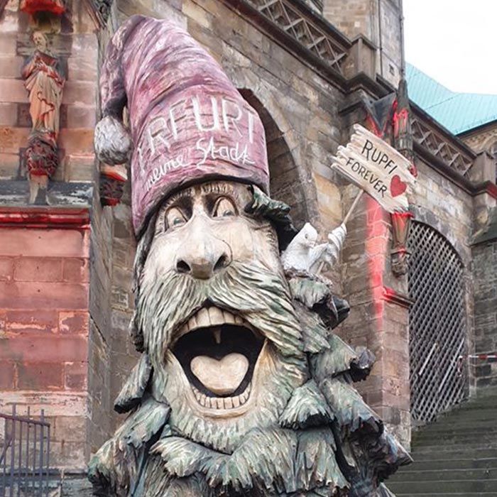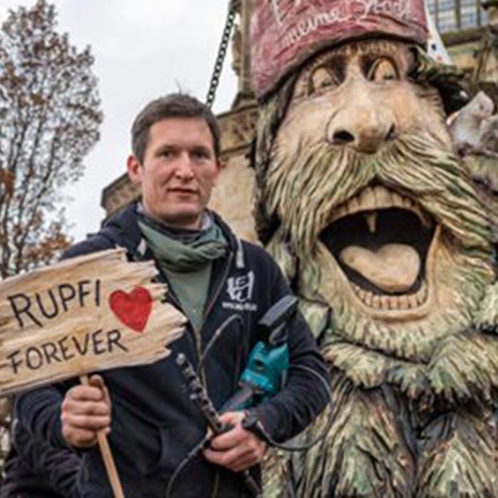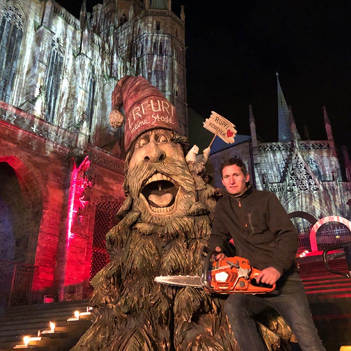 Aus dem orginalem Rupfiholz (Erfurter Weihnachtsbaum von 2018) wurde eine lustige Karikatur des Kult-Weihnachtsbaumes aus dem letzten Jahr gefertigt.