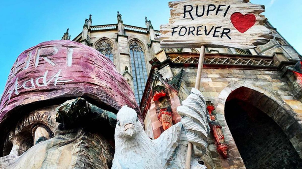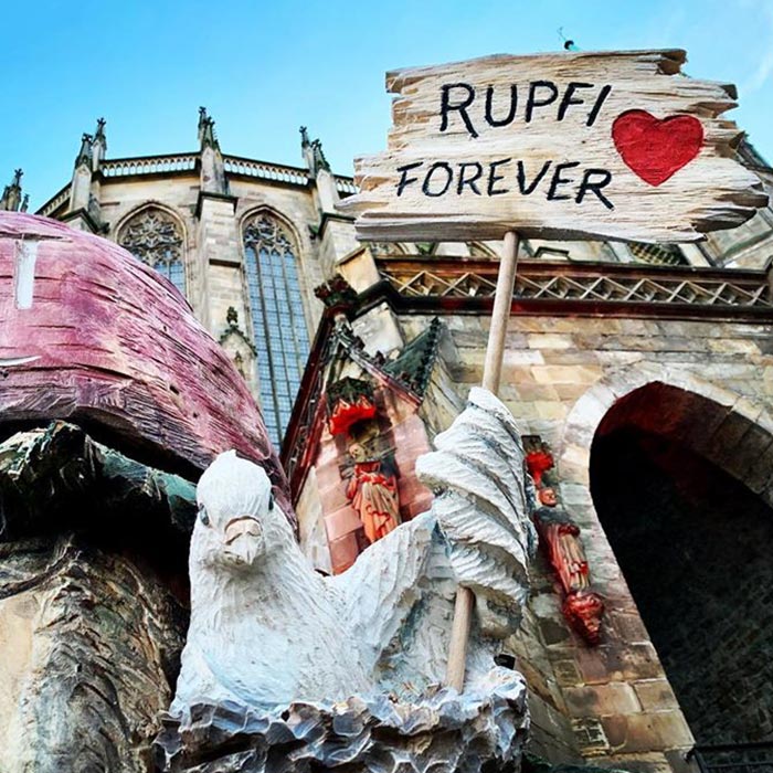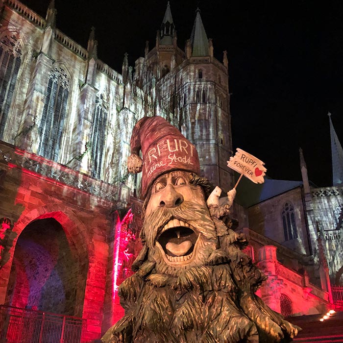 'Rupfi' steht seit dem 26. November wieder auf dem Erfurter Weihnachtsmarkt. - Diesmal im Märchenwald.